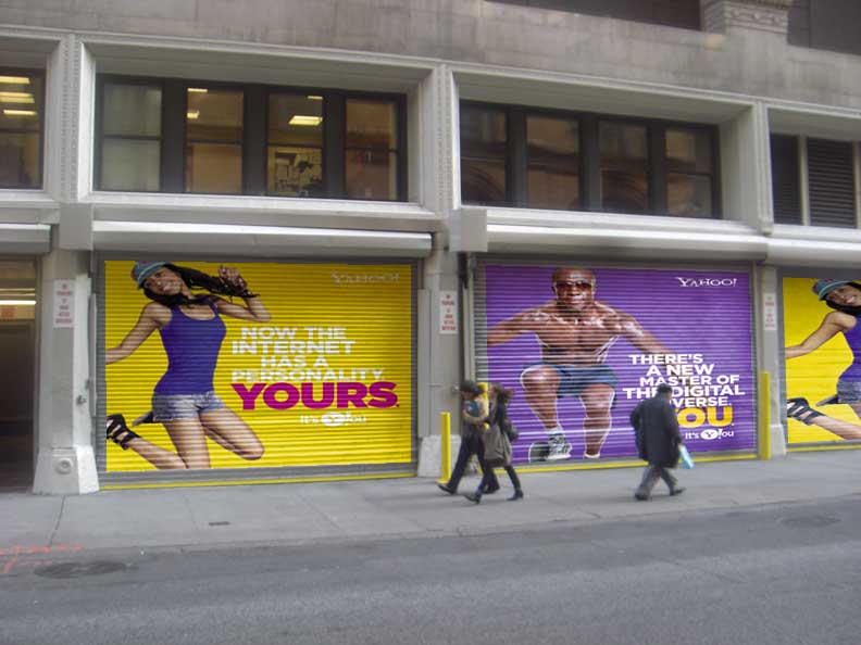 Large-format, eye-level advertising visible to pedestrians and vehicular traffic.