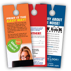 Door hangers are meant to be a one on one engagement. You can target homes or even college dorm rooms. Either way you will cut through the regular junk mail bundle and touch your potential new client. These are large and hang from the door as they suggest, but they can also include a coupon to a local retail store. Bring your message to the people when they arrive at home.